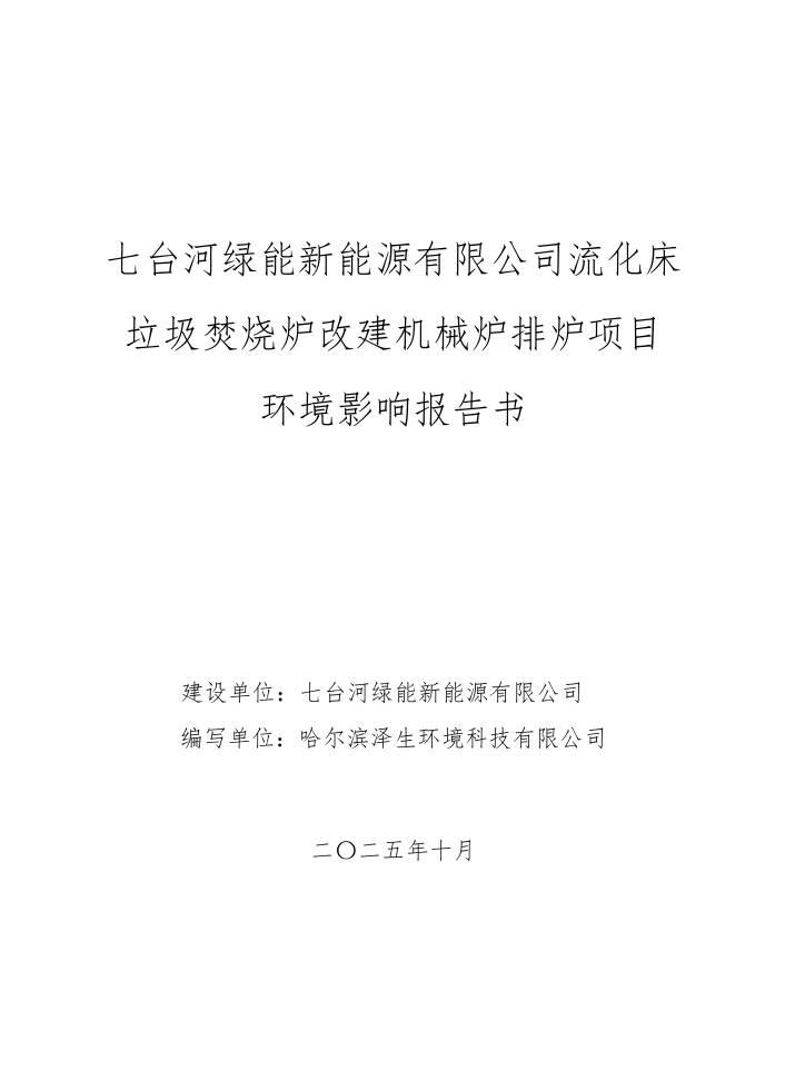 七臺(tái)河綠能新能源有限公司流化床垃圾焚燒爐改建機(jī)械爐排爐項(xiàng)目環(huán)境影響報(bào)告書(shū)報(bào)批前公示.pdf